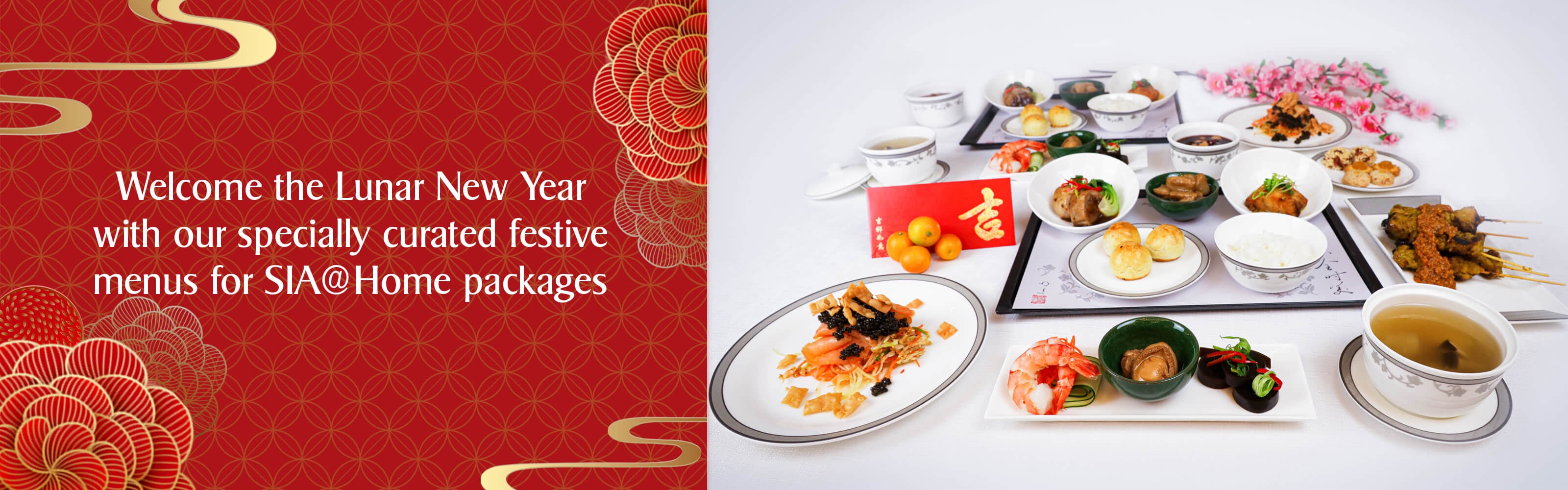 The sumptuous menu features both Singapore Airlines’ signature dishes as well as festive classics. The meal starts with the Singapore Airlines’ signature satay, followed by the Lunar New Year favorite Fa Cai Yu Sheng that comes with Oscietra caviar for that special luxurious touch. Thereafter, dinner proper was a 9-course meal comprising of abalone and prawn appetisers, double boiled chicken soup with sea cucumber, main courses such as braised duck with fa choy and fried sea bass with orange lime sauce and seasonal dessert in celebration of Lunar New Year. And there’s a sweet ending of the meal with an assortment of festive cookies.