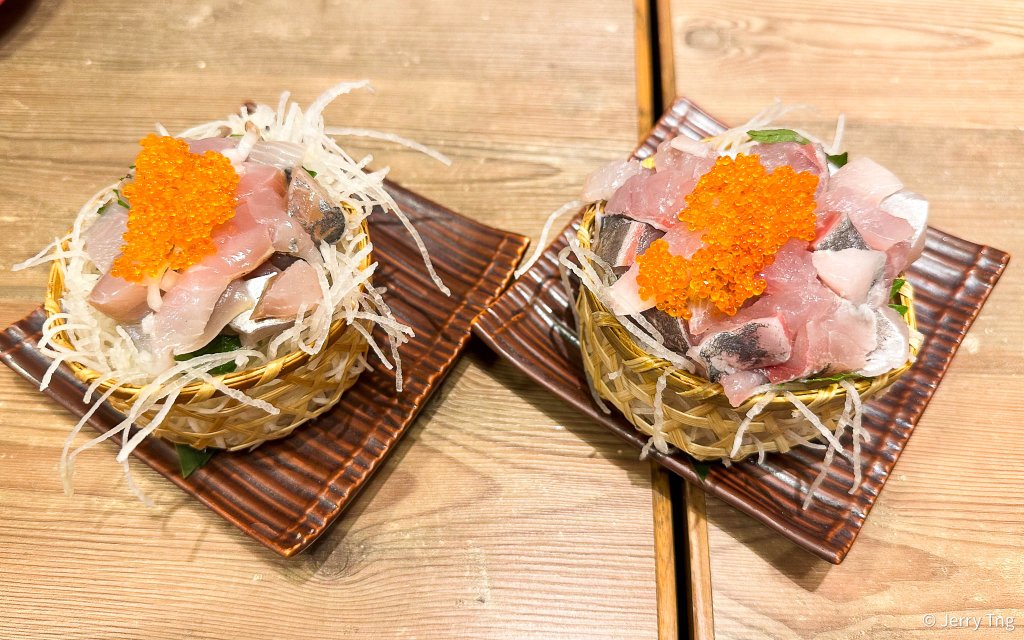 Izakaya-standard rolled egg omelette, nothing to brag about. The trick to the omelette was the use of dashi stock in the egg mixture. The dashi used for the egg mix was slightly sweet and full of umami.