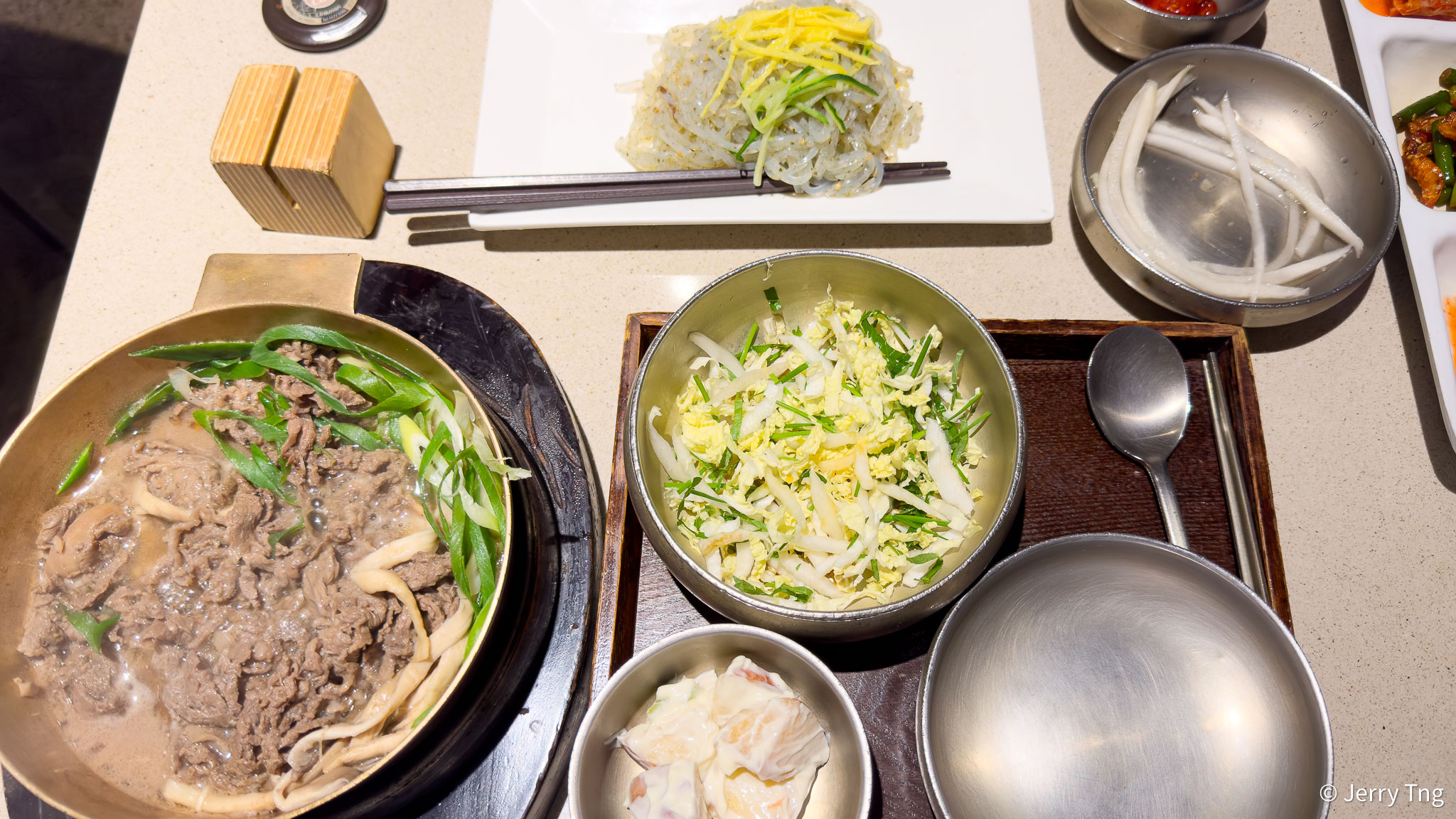 The set kicks off with a seasonal porridge, salad, various Korean savoury pancakes, bulgogi and spicy pollack, and your selection of main including woogeojitang (cabbage stew), yukgaejang (spicy beef stew), beoseot deulkkae tang (mushroom and wild sesame stew), doenjang jjigae (soybean paste stew), goldongban (Royal bibimbap), mandu, and naengmyeon and then capped with a dessert.