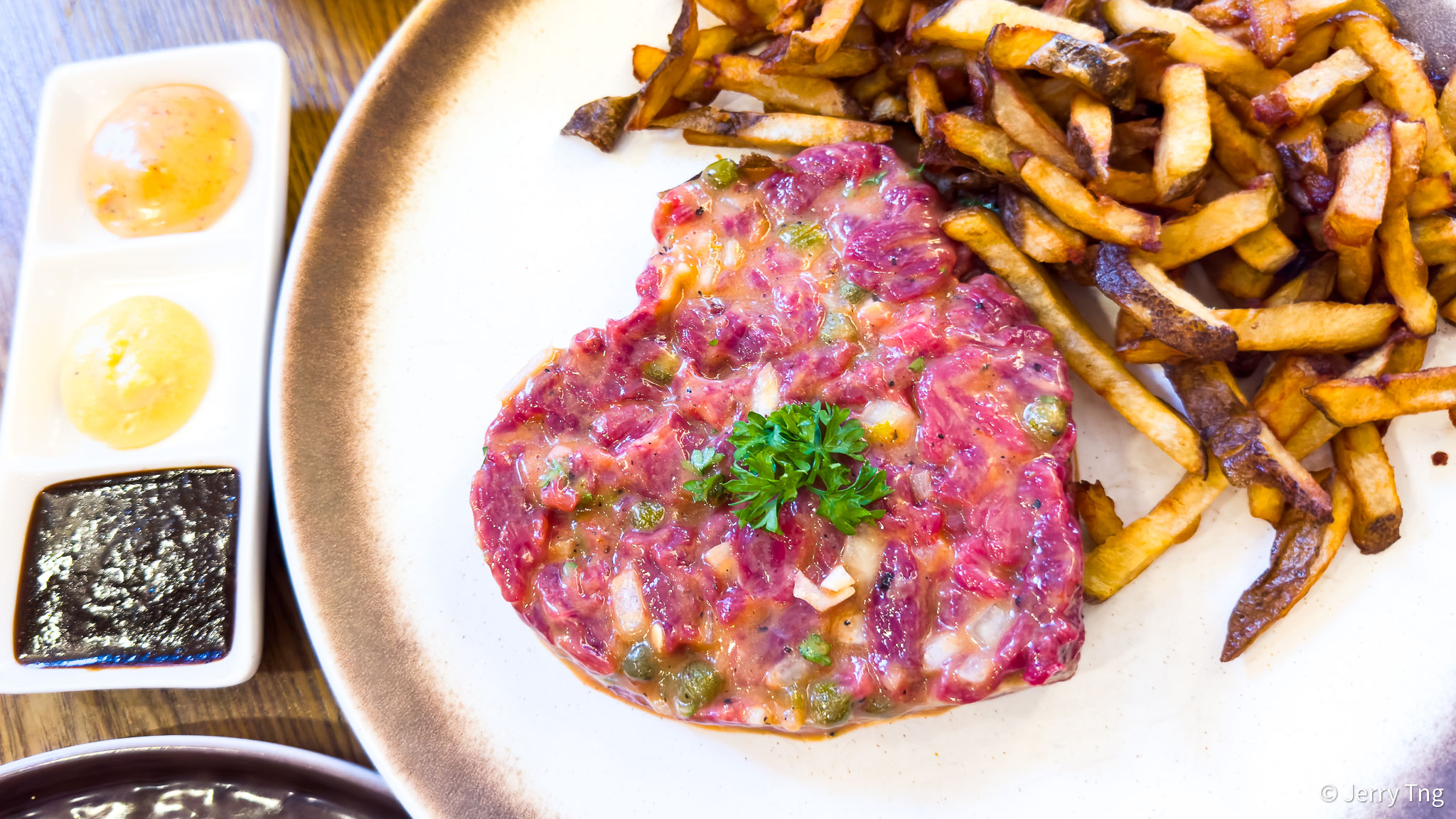 I was sold the moment it said it was hand-cut beef tartare. A good beef tartare has to be hand-cut so that texture of the beef can be enjoyed thoroughly. It came already blended with chopped onions, capers, bits of English parsley (which three Princess off), salt, pepper and Worcestershire sauce. I am pretty sure a raw egg was among the ingredients. Loved it.