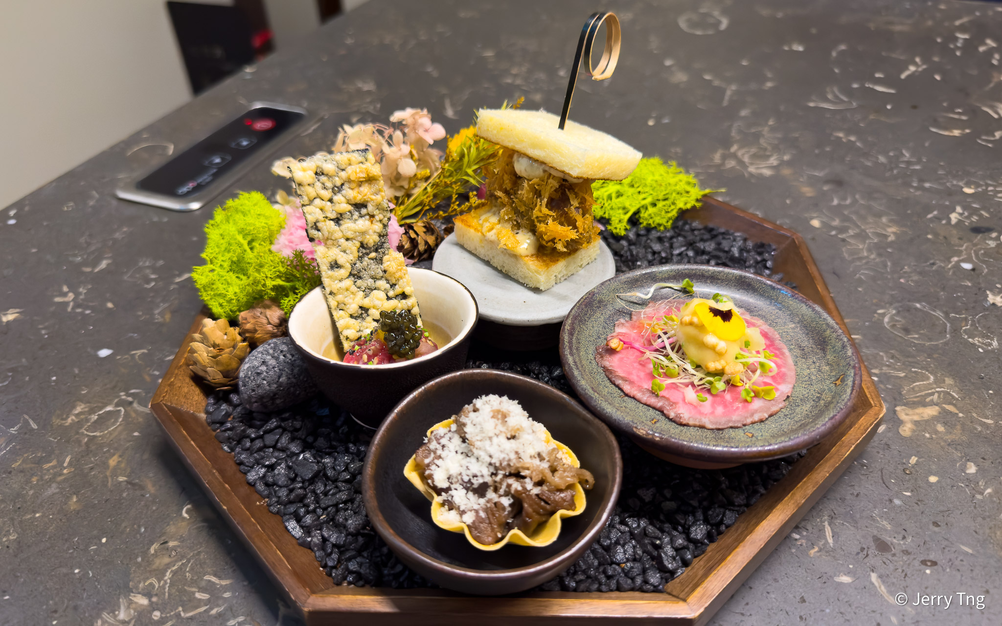 Next, a beautifully plated quartet of Hanwoo beef creations that was well-thought through. Each bite featured the Hanwoo in a different style.